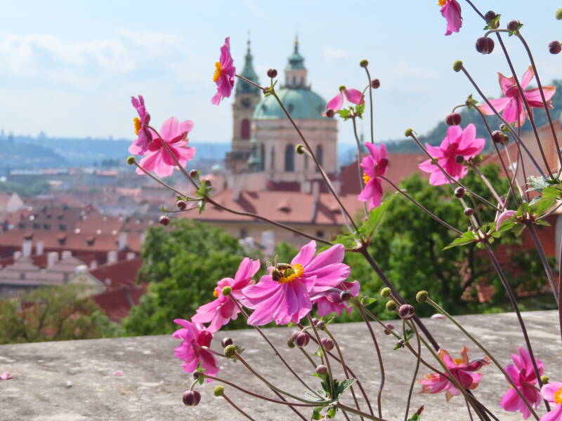 Ik vervolg mijn weg naar de zuidelijke tuinen van de Praagse Burcht, die in volle bloei staan. Deze tuinen zijn gratis toegankelijk en absoluut een aanrader, al is het maar voor het prachtige uitzicht over de stad. Je vindt ze via een onopvallende ingang tegenover de Sint-Vituskathedraal – een trap af en je bent er. Of neem de oostelijke ingang van de Praagse Burcht (Jiřská).